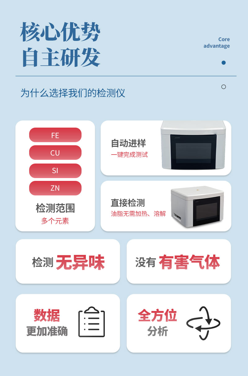 潤(rùn)滑油脂直接放進(jìn)油盒進(jìn)行檢測(cè),無(wú)需對(duì)油脂進(jìn)行加熱、溶解等步驟,不破壞樣品。全程檢測(cè)無(wú)異味、無(wú)有害氣體,無(wú)需放置于通風(fēng)櫥,對(duì)試驗(yàn)人員的健康提供了保障;