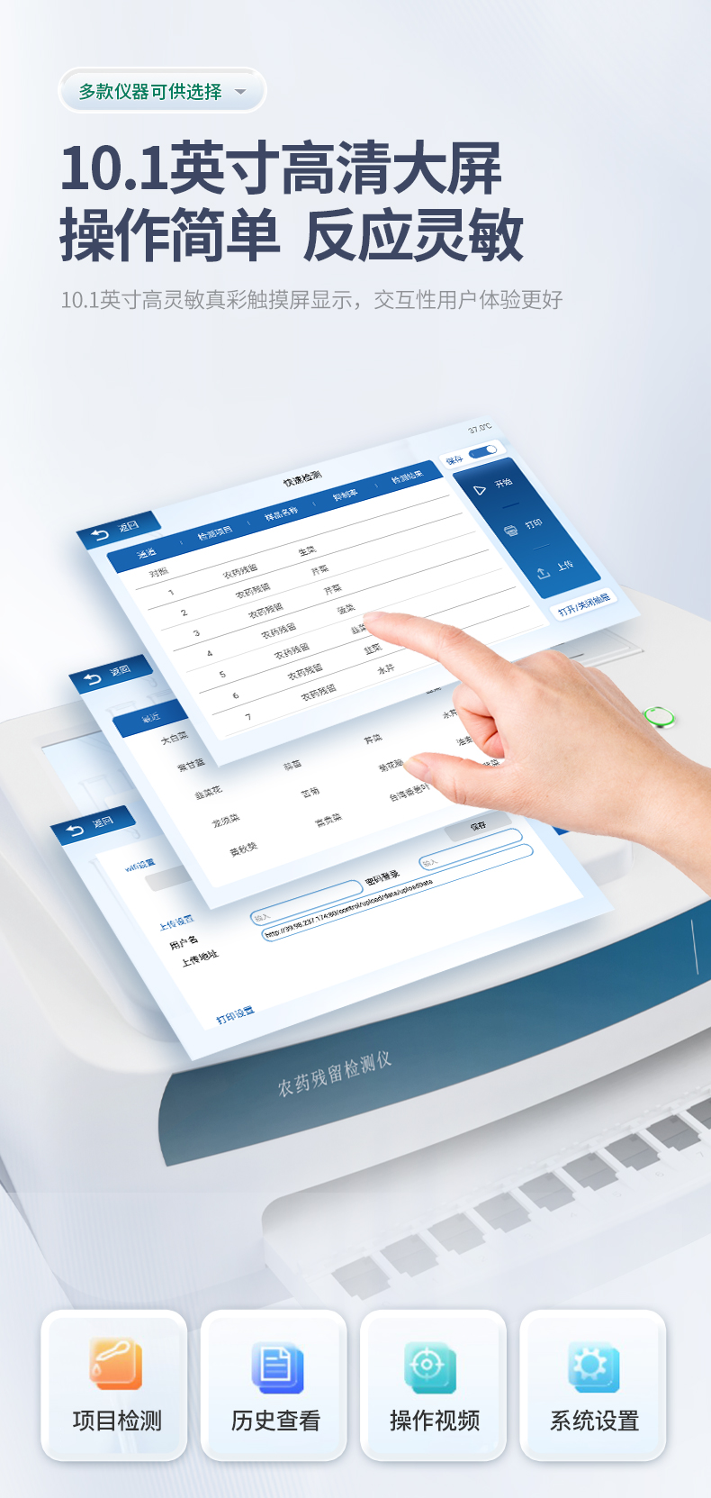 該儀器為三體儀器新研發(fā)一款農(nóng)殘快速檢測儀,采用國標(biāo)速測卡,使檢測速度更快,操作更加簡便。檢測標(biāo)準(zhǔn):依據(jù)國家標(biāo)準(zhǔn)方法(GB/T5009.199-2003)以及世界衛(wèi)生組織WHO、世界糧農(nóng)組織FAO殘留農(nóng)藥檢測標(biāo)準(zhǔn)、世界環(huán)境保護(hù)局EPA參照攝入量等要求來設(shè)計(jì)。
