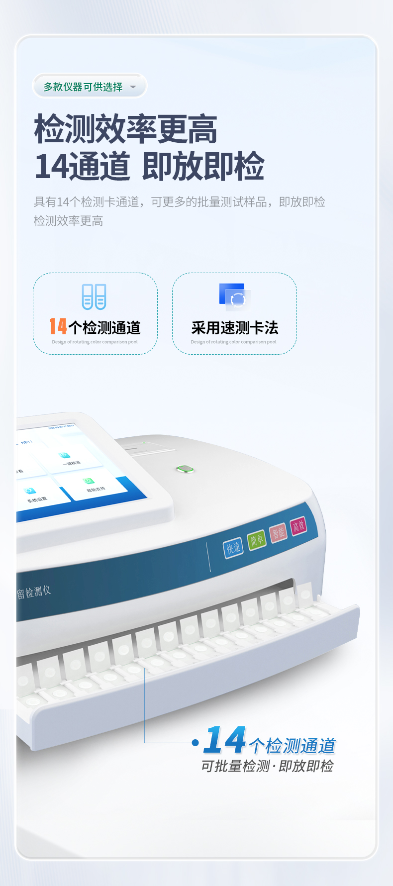 4、★具有14個(gè)檢測卡通道,可更多的批量測試樣品,即放即檢,檢測效率更高。