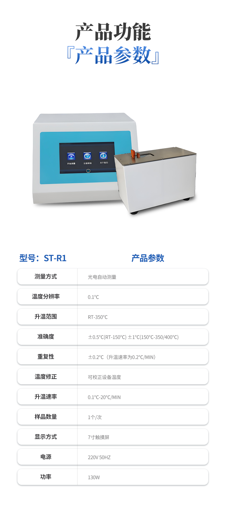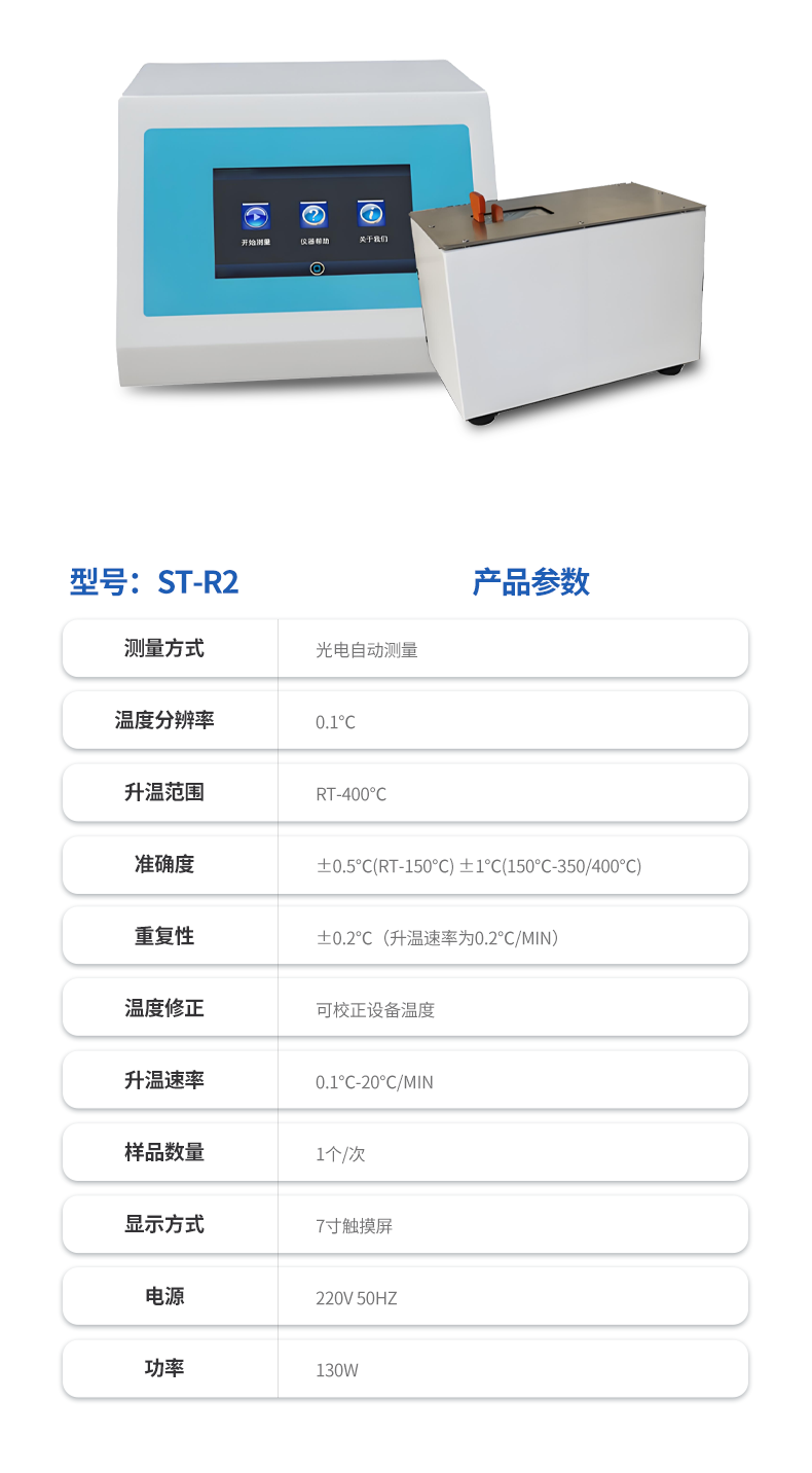 1. 7寸彩色觸摸屏,直接顯示滴點(diǎn)軟化點(diǎn)溫度。